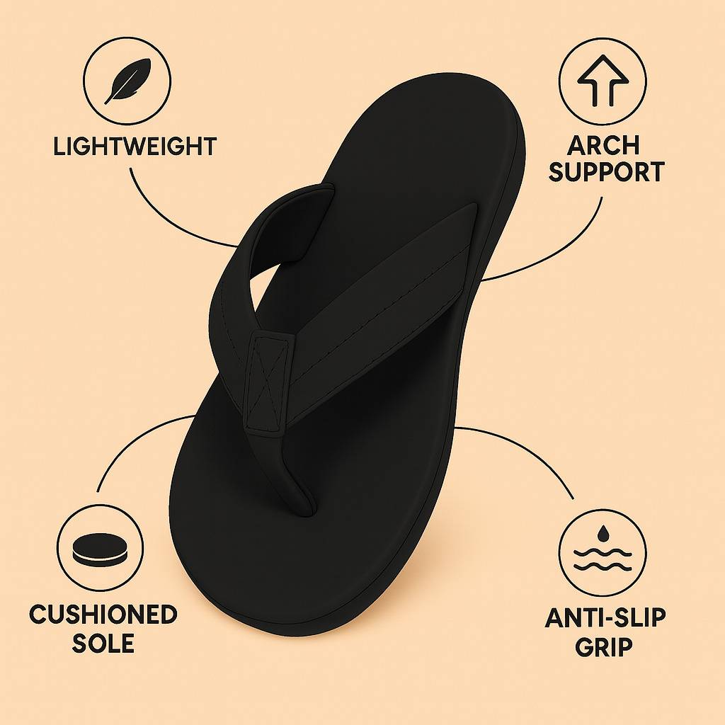 Upgrade your daily footwear with Ortho Joy Men’s Orthopedic Slippers, designed for superior comfort, support, and durability. Whether you're relaxing at home or stepping out for quick errands, these lightweight flip-flops provide excellent cushioning and anti-slip protection for everyday wear.